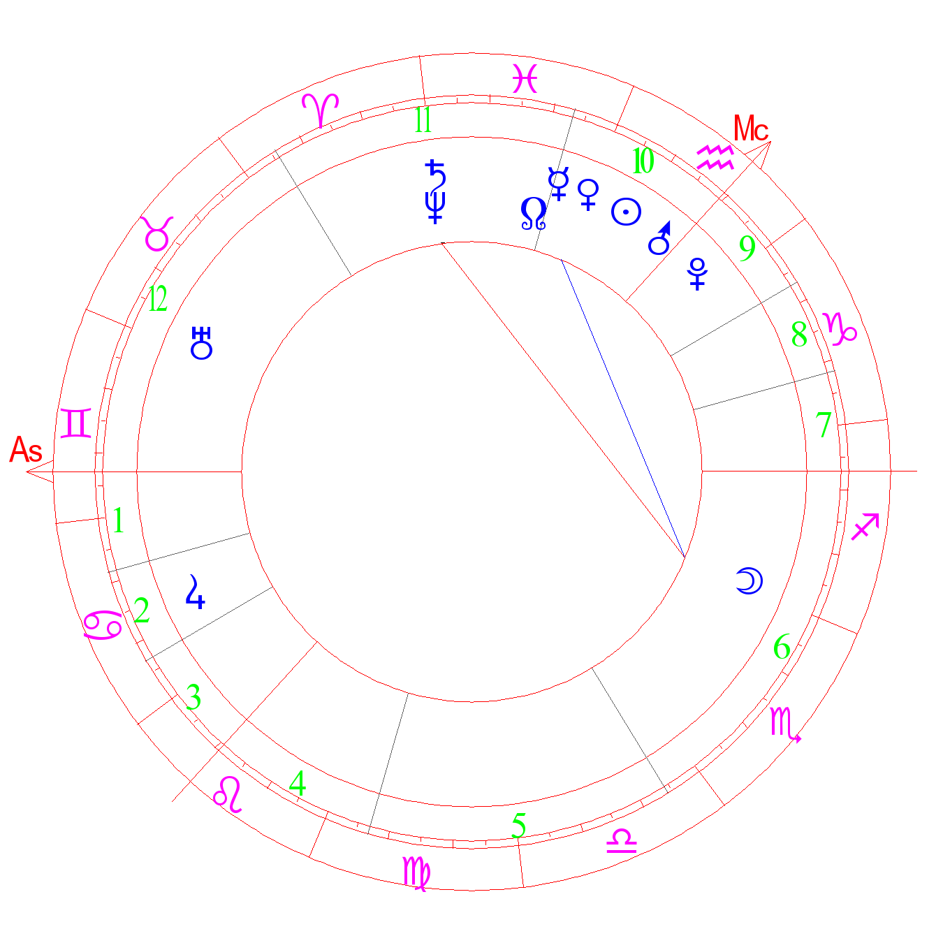 The degree of Mars and Aquarius, the fall of Pluto.