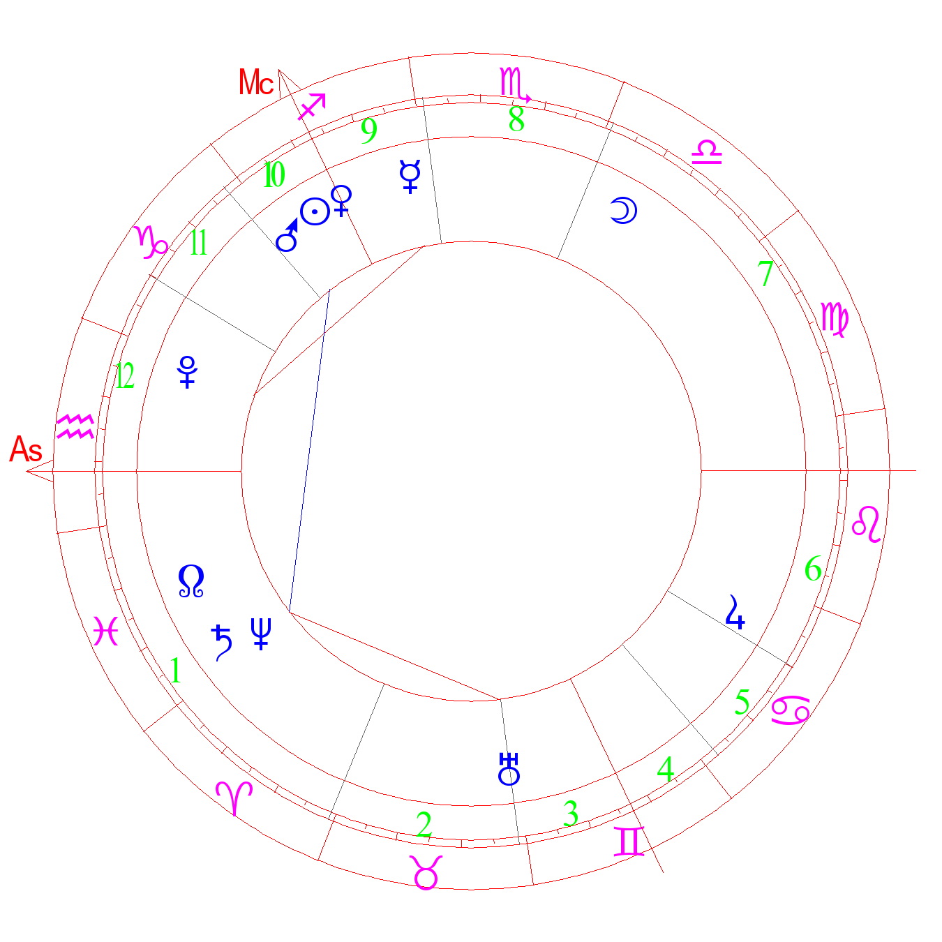 A difficult struggle during the life, a spirit of contradiction. Agression. Danger of wounds from firearms or cold weapons. A military career. Sometimes results in inclination to perversion, murder (ASA). Fighting, aggressiveness, fiery temper, danger of injury, mathematical abilities, caecitis when damaged, confused insanity. The degree of Jupiter (Kefer). Faith. Growth (deVore)