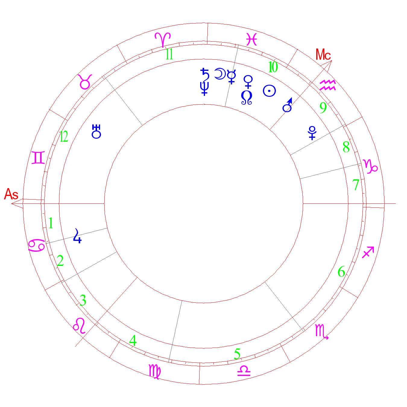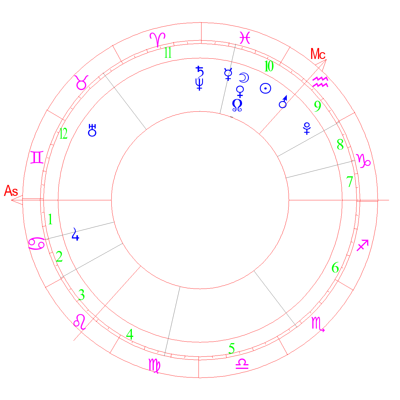 Virile character, overcoming obstacles. An excellent status. Success in new businesses and adventurous aspirations. Luck and happiness with friends, patrons, love, especially if a person is guided by intuition. Psychic mediums, people with uncommon psychology, unusual abilities, living inter-dimensionally (ASA). Dignity, self-confidence, ascent, high hopes. The degree of Jupiter (Kefer)