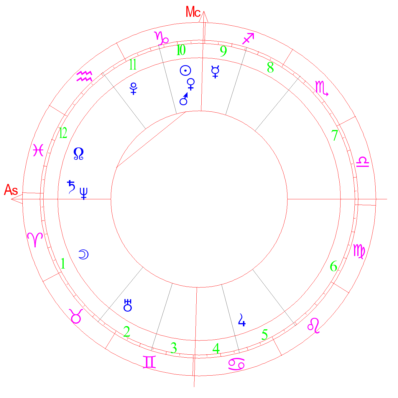 The degree of great mental ability, genius, misanthropy. Spiritual, noble, icy intelligence. Great opportunities for elevation, numerous changes in life, elusive fortune. Some misanthropy may develop (ASA). Arrogance, diligence, the danger of paralysis, dubious happiness. The degree of Saturn (Kefer). Unusual abilities (deVore)